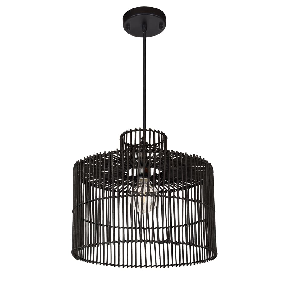 Hangs from an adjustable 1.2m fabric-covered flex and matching black ceiling rose.
